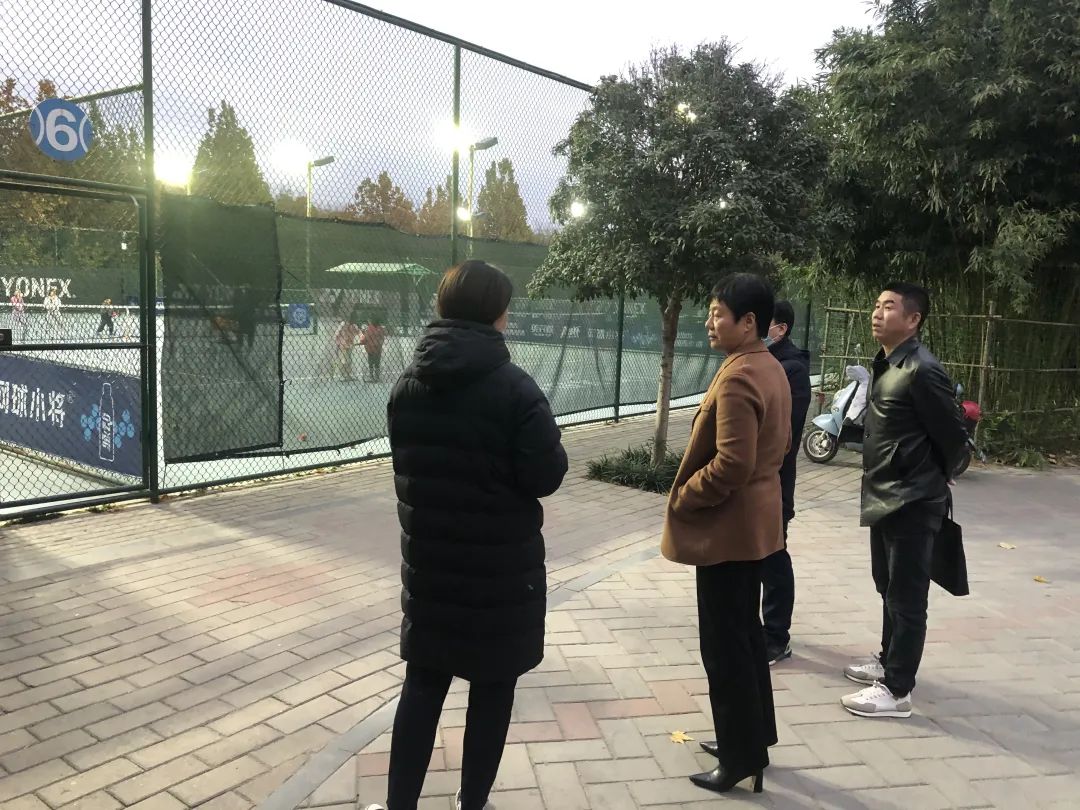李雅一行首先来到英开体育产业有限公司,对英开体育的网球场地设施、乒乓球训练设施进行了实地查看,并就企业的经营状况、发展建设中遇到的问题、难点及未来的发展规划进行了深入交流。