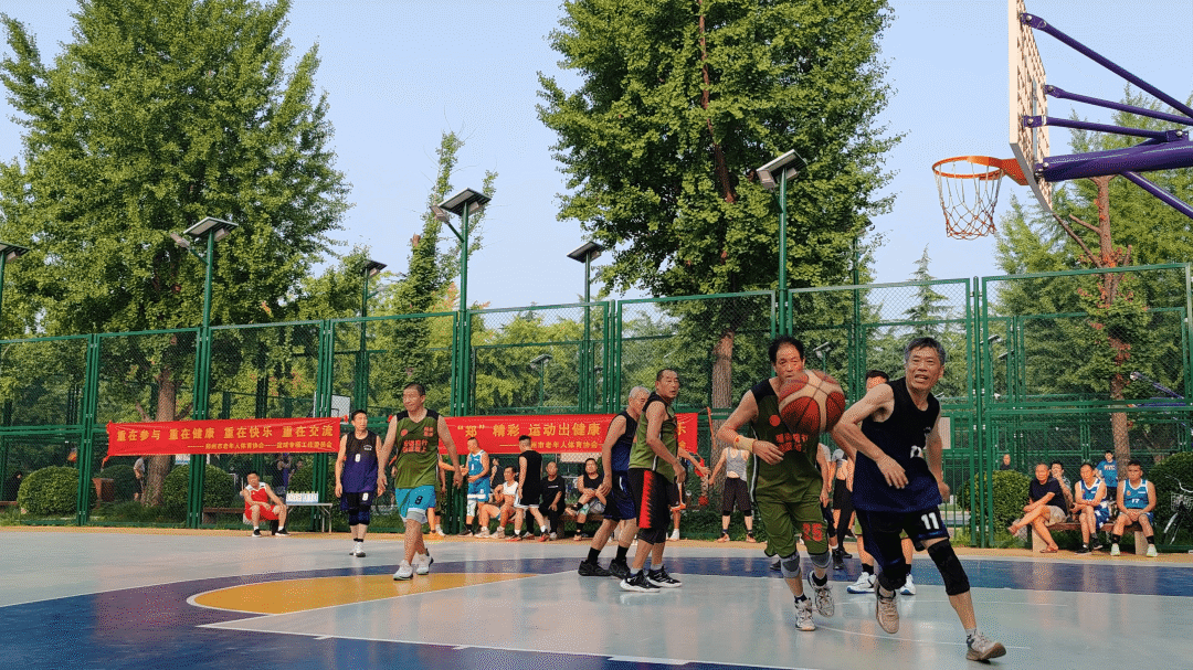 赛场之上,参赛者热情高涨。50-59岁组球员攻防激烈,三分精准;60岁以上组更重配合与战术素养。场边观赛者助威声此起彼伏。赛事始终贯彻淡化锦标、重在参与、安全第一、快乐至上主题。