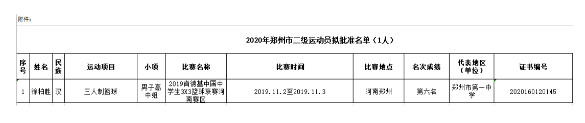 各有关单位: 根据《运动员技术等级管理办法》的规定,现对拟授予国家二级运动员称号的徐柏胜进行公示,公示期自2020年2月7日至17日,共七个工作日。