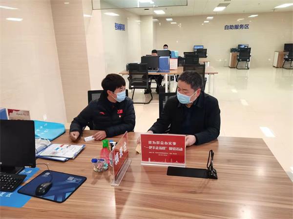 政务服务大厅参加“一把手走流程”体验活动,以工作人员身份与办事群众面对面交流,为群众办理相关审批事项。