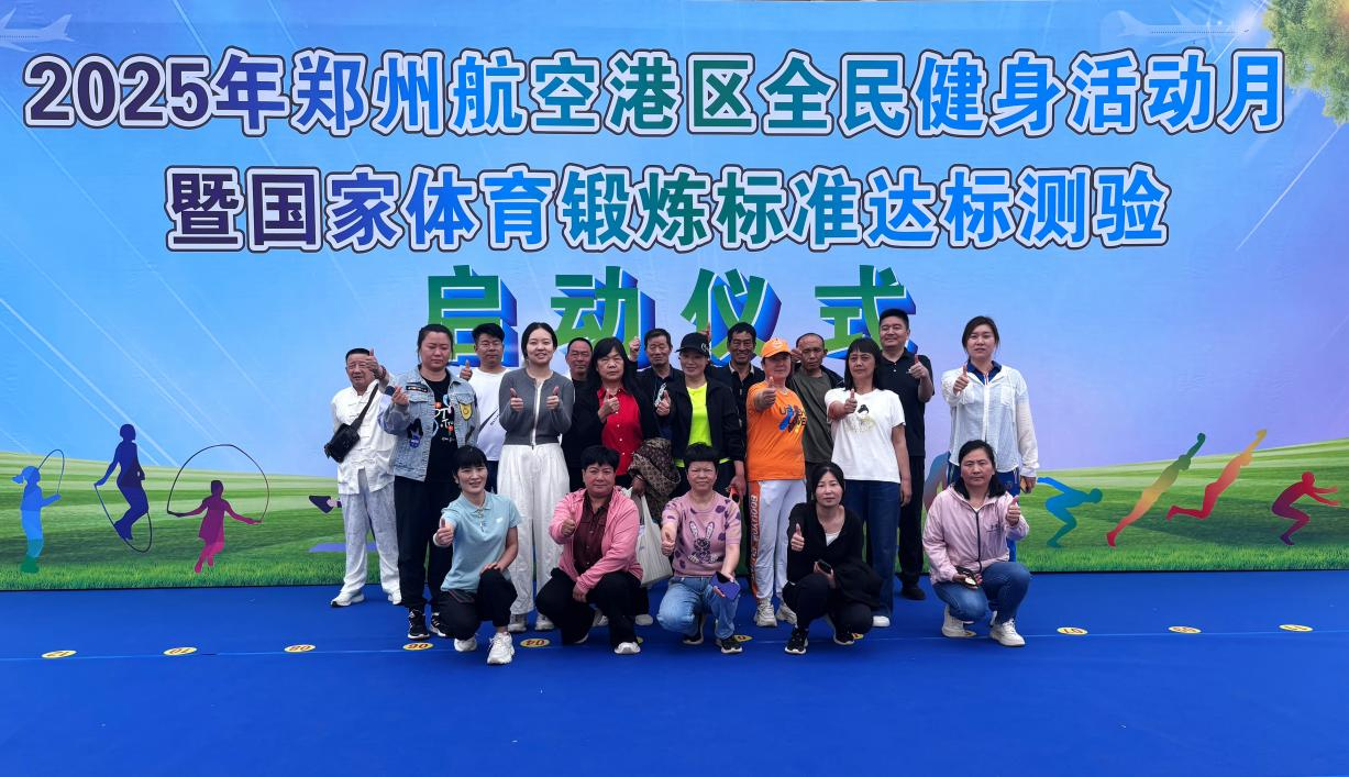 5 月 8 日,郑州航空港区新港办事处组织 20 名居民代表,参与 2025 年郑州航空港区全民健身活动月暨国家体育锻炼标准达标测验启动仪式。
